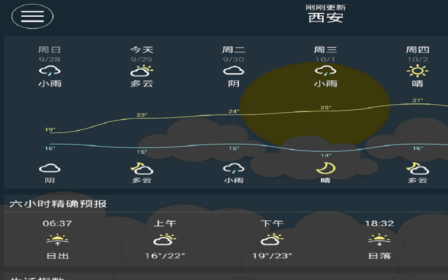 3、**极简交互设计**:采用上下滑动操作逻辑,首页集中显示核心数据,二级页面通过手势触发。例如,向左滑动查看未来三天预报,向右滑动进入生活指数页面,单手即可完成所有操作。