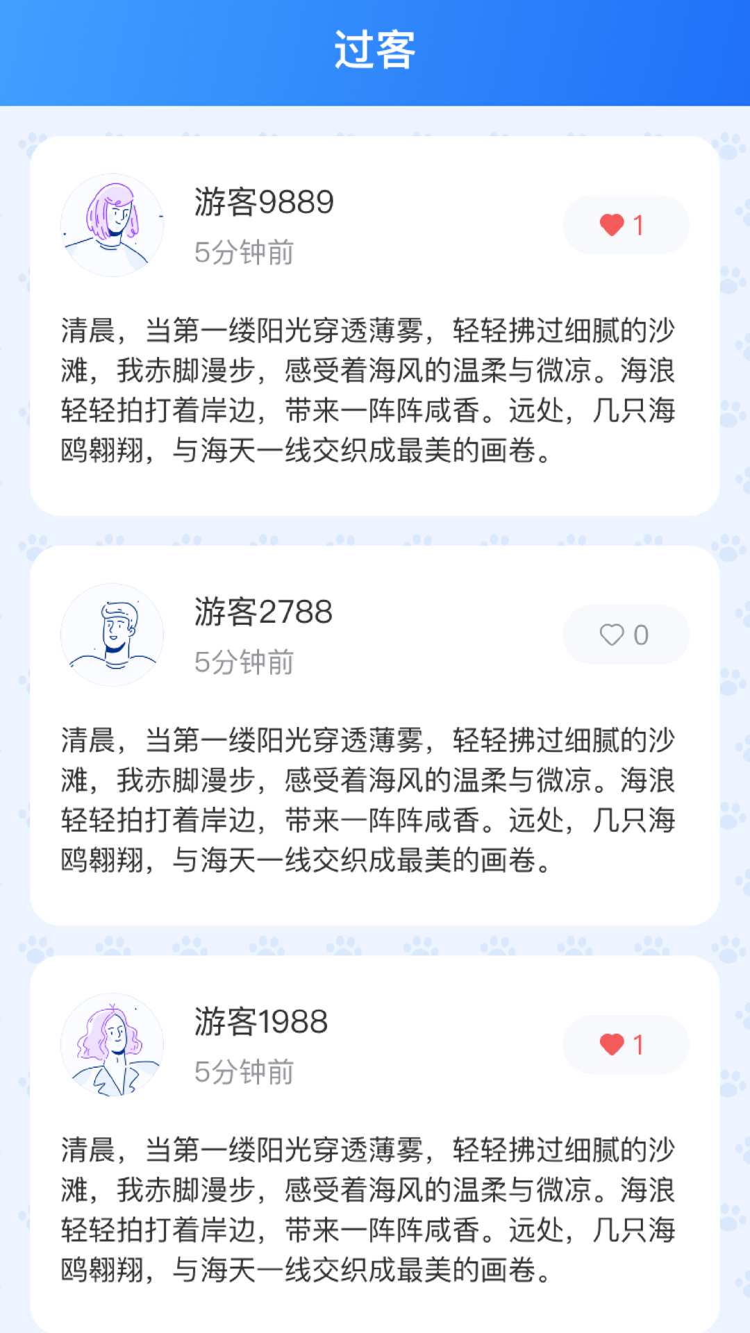 1、萌宠社交生态:用户可创建猫咪档案,通过投喂虚拟小鱼干、互赠旅行明信片等方式增加好友亲密度,解锁隐藏旅行地图,形成以宠物为纽带的社交网络。
