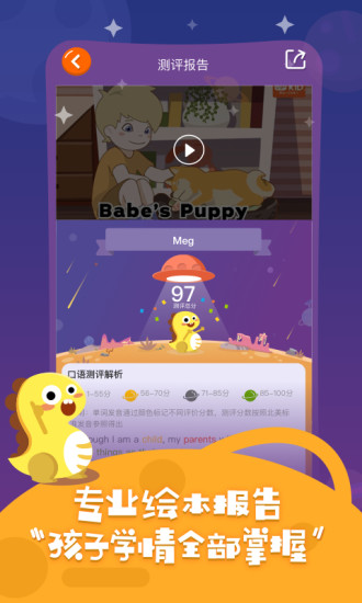 1、原创英语绘本库覆盖200+主题,从“恐龙的一天”到“太空探险”,每本绘本均配有专业外教朗读和互动问答。孩子阅读后可通过“恐龙问答”环节检验理解,正确率影响后续解锁的绘本难度。