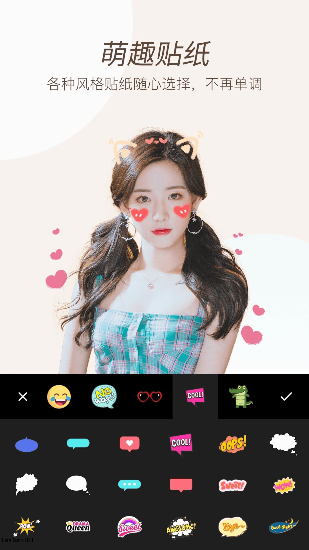 1、AR动态贴纸:结合AR技术,推出数百款3D动态贴纸,如萌宠、表情包、节日特效等。贴纸可智能贴合人脸或物体,支持实时互动(如眨眼触发动画),为自拍和短视频增添趣味性,成为社交平台的“流量密码”。