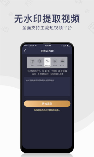 1、智能识别去水印:通过AI算法自动检测图片或视频中的水印区域,用户只需点击“一键去除”,即可快速完成处理。对于复杂背景或半透明水印,APP提供手动涂抹工具,可精准调整去除范围,避免误伤主体内容。