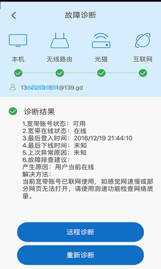 2、**智能故障诊断与修复**:内置智修精灵引擎可自动归类97%的常见网络问题,执行三级排查流程:终端检测(检查设备配置)、路由分析(评估光猫/路由器状态)、链路质量测试,最终生成可视化报告并提供重启设备、信道切换等修复建议。实测数据显示,该功能使故障处理时长降低30%,用户无需专业背景即可自助解决网络问题。