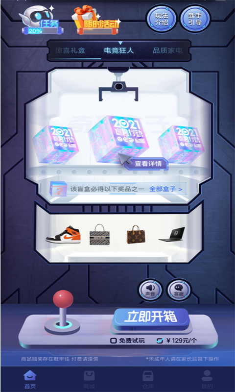 1、**正品溯源保障**:所有商品均通过品牌方、授权代理商直采,并经过专业质检团队三重核验,包括外观检查、功能测试及防伪码验证。例如,每款数码产品均附带官方保修卡,美妆商品支持扫码查验真伪,彻底消除用户对盲盒商品质量的顾虑。