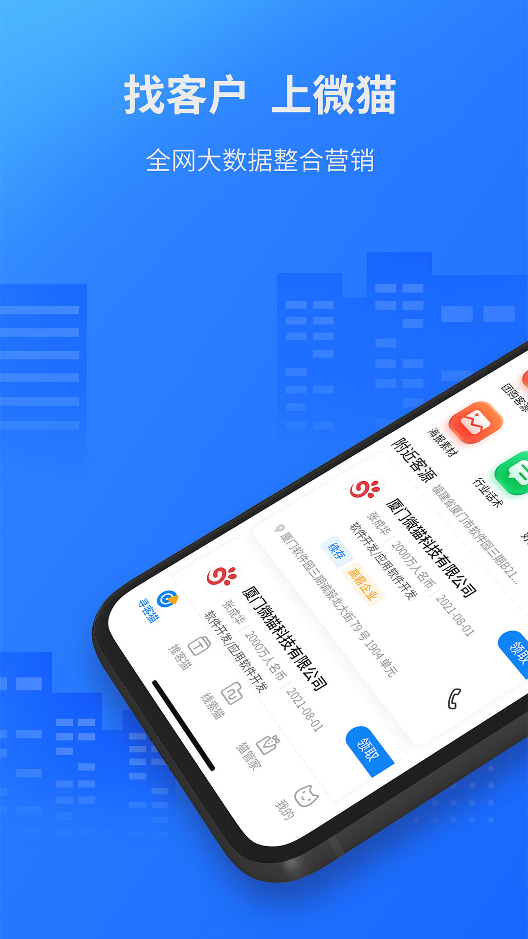 微猫APP是一款由厦门书生微猫网络科技有限公司开发的智能获客与商业管理工具,依托3亿+企业数据库及AI算法,为销售、创业者及中小企业提供精准客户获取、客户管理、人脉拓展等一站式解决方案。该应用覆盖工商数据、短视频平台线索、B2B网站资源、地图拓客等多元渠道,支持Android及iOS双平台,以“普惠定价+裂变代理”模式降低使用门槛,成为全国2.4亿销售人群及创业者的刚需工具。