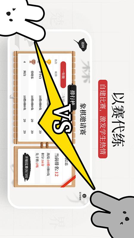 1、**AI分级挑战系统**:设置10个难度等级的AI对手,从“新手兔”(每步思考3秒)到“大师兔”(模拟职业棋手思维)。用户可设定“每周攻克1个AI等级”的目标,系统记录对战数据并生成成长曲线。例如,某8岁用户通过3个月挑战,从第3级AI(胜率35%)提升至第7级(胜率58%),战术运用能力显著增强。