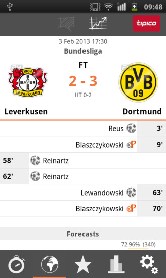 1、Futbol24的核心功能之一是实时赛事直播,用户无需切换多个平台即可观看高清流畅的足球比赛,支持多视角切换与即时回放,确保不错过任何精彩瞬间。同时,应用内置智能提醒功能,可根据用户关注的球队或赛事自动推送开赛通知,避免遗漏关键场次。