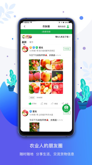 2、**用户生态闭环构建**:通过“关注功能”与“同步通讯录”,用户可管理合作对象并邀请手机联系人入驻。广西香蕉种植户通过平台组建200人合作社,年销量增长40%,形成稳定的产销网络。