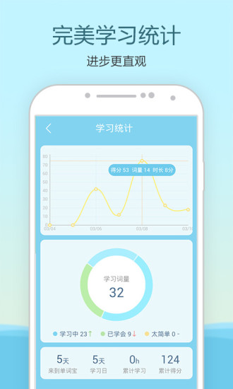 3、个性化学习报告:每日生成学习数据统计,包括掌握进度、正确率趋势、薄弱词汇排行等,并生成可视化图表,让学生清晰感知自己的进步与不足。