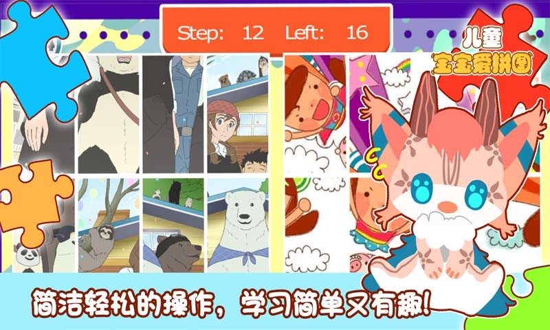 2、亲子协作挑战:设置“双人拼图”模式,家长与孩子共同完成12块拼图,系统会记录协作次数并解锁专属勋章,促进亲子互动的同时培养团队协作意识。