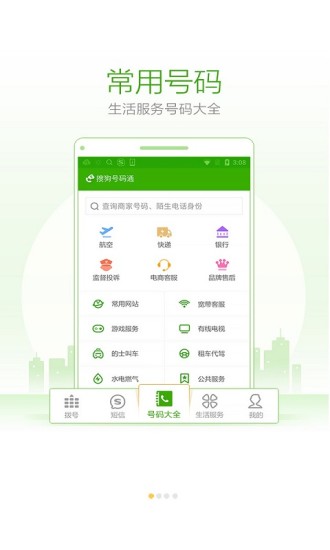 2、**超级电话本与快捷查询**:内置全国号码数据库,用户可通过关键词搜索或分类浏览(如快递、航空、租车代驾等)快速定位所需号码。支持一键直呼功能,用户无需手动拨号即可直接联系商家。此外,APP提供3D Touch快捷菜单与Widget组件,用户复制陌生号码后可直接在首页查号,无需打开应用。