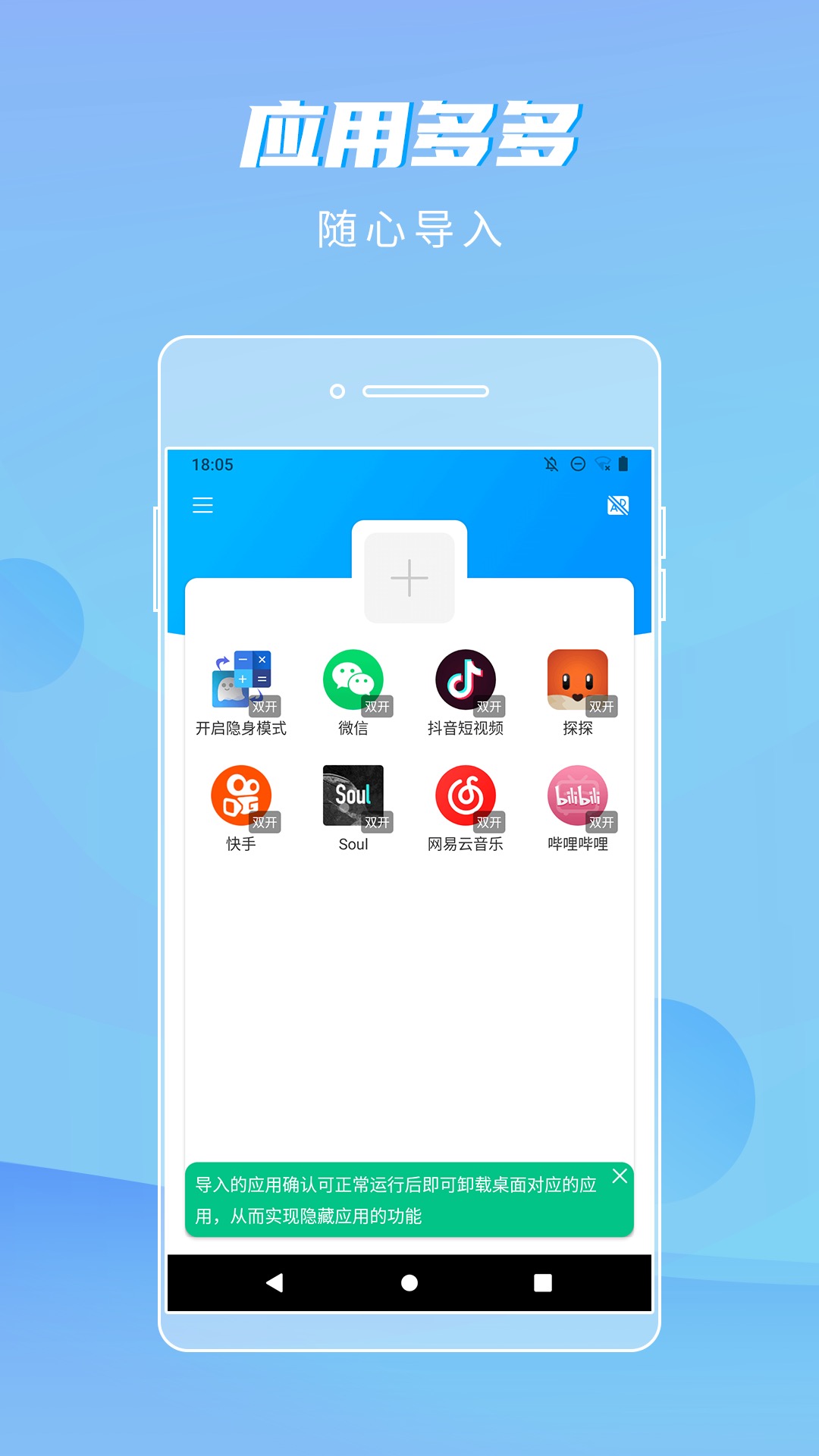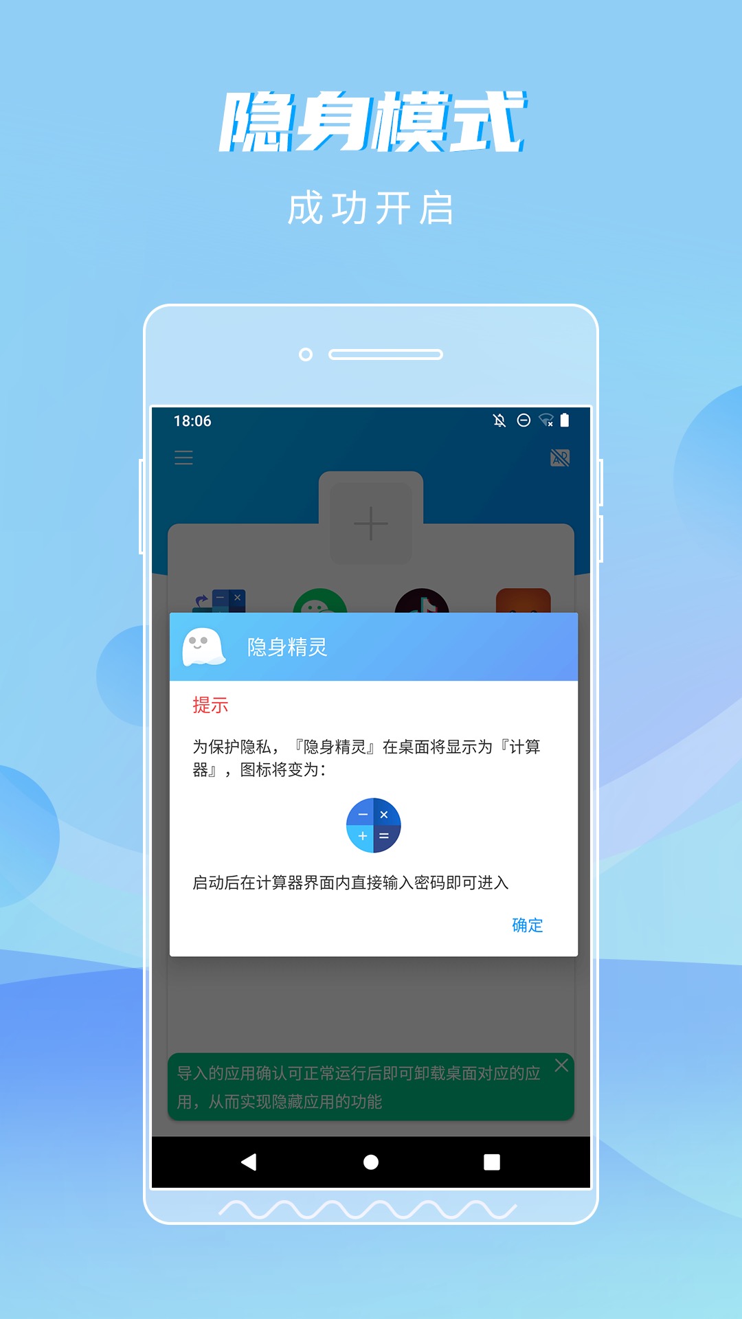 1、**多层级隐私保护**:隐身精灵提供“应用隐藏+数据加密+界面伪装”三重防护。用户可将微信、QQ等社交软件或相册、视频文件导入隐身空间,卸载桌面图标后仅通过密码入口访问;同时支持将APP图标伪装成计算器、2048小游戏等样式,即使他人翻看手机也难以察觉真实功能。例如,用户可将私密照片隐藏后,桌面仅显示一个普通计算器图标,输入预设密码才能进入加密相册。
