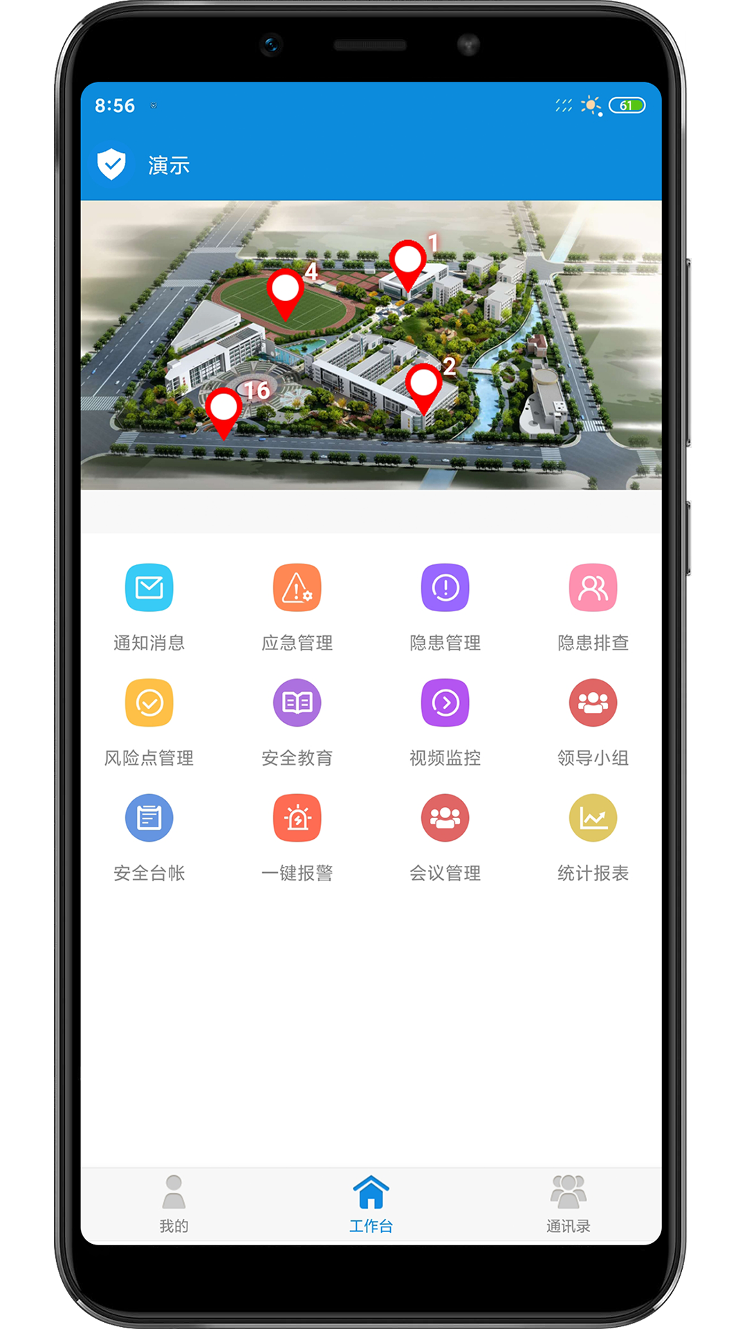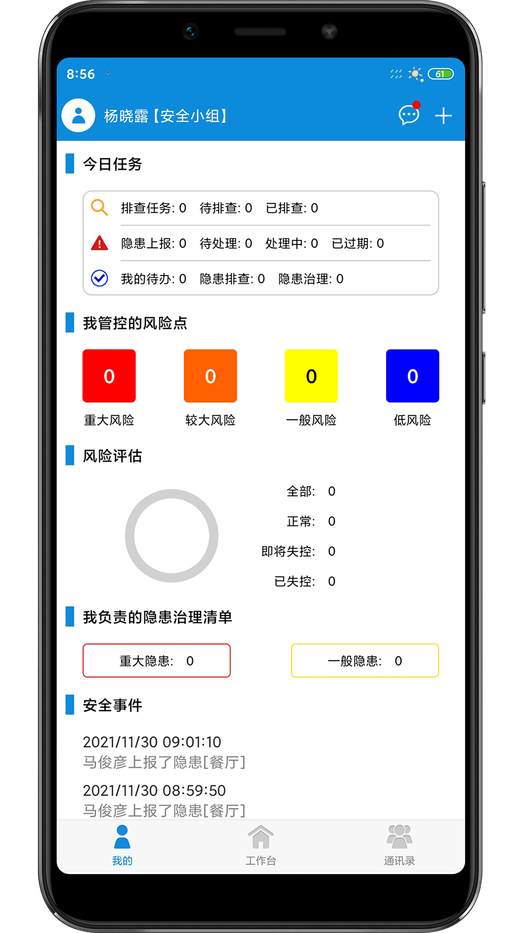 1、**风险动态管控**:平台提供风险点全生命周期管理功能,用户可通过移动端录入风险名称、类型、等级及管控措施,系统自动生成风险四色图(红/橙/黄/蓝),直观展示区域风险分布。例如,某化工厂通过风险分级功能,将储罐区列为红色高风险区域,针对性加强巡检频次,成功拦截3起泄漏隐患。