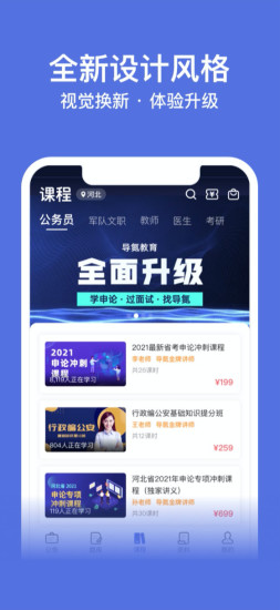 3、高性价比课程设计:相比线下机构动辄上万元的课程,导氮教育APP提供99元至3999元的多档位课程,满足不同预算需求。例如,其“申论提分班”包含20节直播课、100道真题解析和3次一对一批改服务,价格仅为线下同类课程的1/3。同时,平台承诺“未上岸可申请部分退款”,降低用户决策风险。