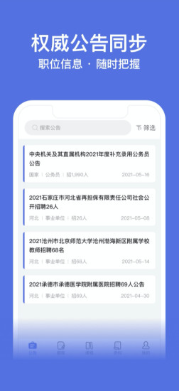 2、实时考情追踪:平台与全国各省市人事考试网数据同步,实时推送招考公告、报名时间、岗位竞争比等信息。用户可设置“岗位提醒”,当目标岗位发布时,APP会通过消息推送和短信双重提醒,避免错过报名窗口。此外,考前7天会推送“冲刺包”,包含高频考点预测和考场注意事项。
