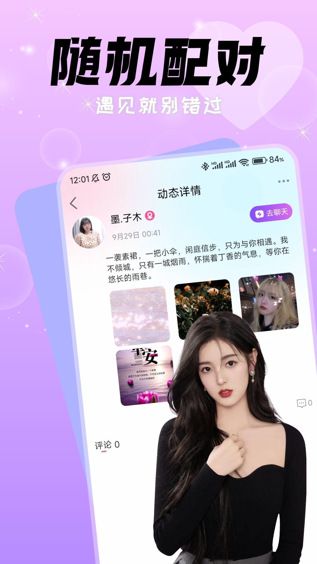 2、平台提供“动态社区”功能,用户可发布图文或短视频分享生活片段,其他用户可通过点赞、评论互动。这种非即时性交流降低了社交压力,让用户从共同话题切入,逐步建立信任。