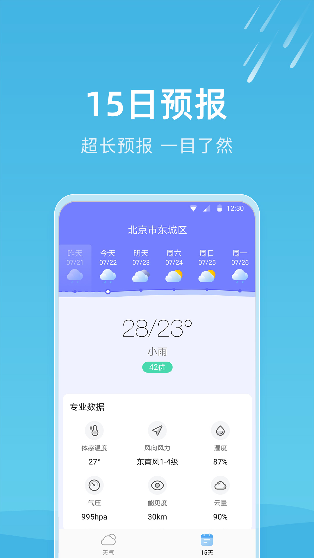 2、APP的轻量化设计使其占用存储空间极小,运行流畅不卡顿,即使在中低端手机上也能快速加载天气数据,满足用户对高效使用的需求。