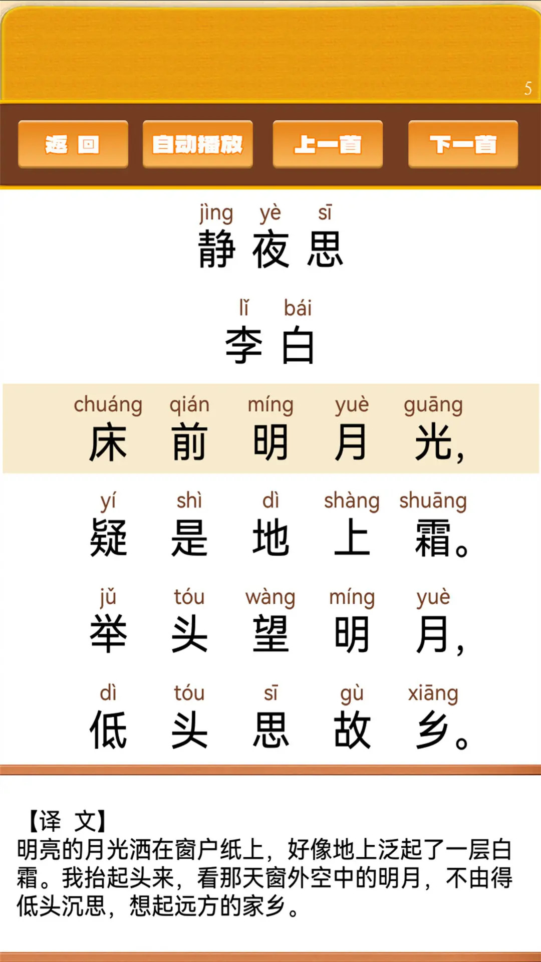 2、**简单汉字模块**:精选500+高频汉字,以识字卡片形式呈现。卡片包含拼音标注、笔画顺序、部首解析及组词示例,如“日”字卡片显示拼音“rì”、笔画“竖-横折-横-横”、部首“日”及组词“太阳”“日子”,强化汉字结构认知。