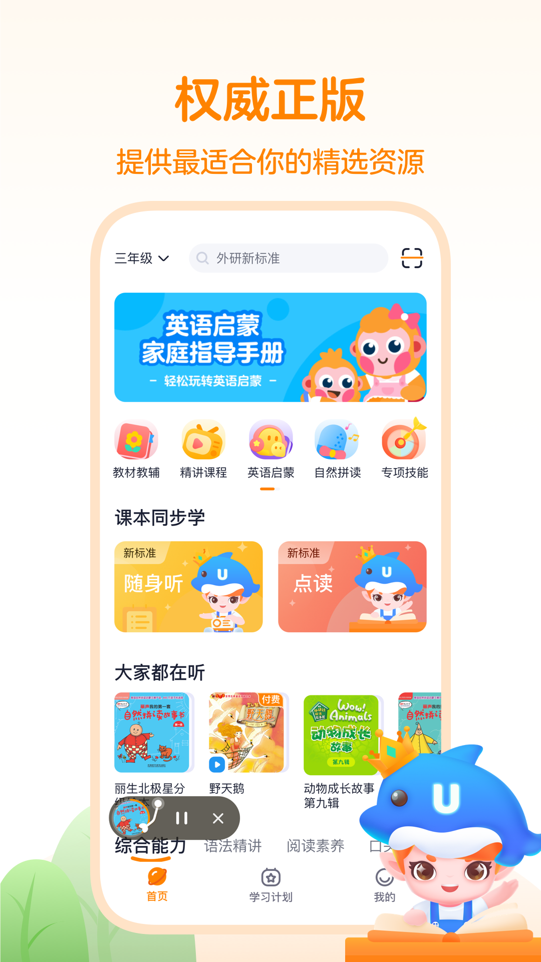 2、专业教研团队保障内容权威性,课程由外研社资深编辑与一线名校教师联合开发,采用“动画导入-知识精讲-互动演练”三阶教学法。以自然拼读课程为例,每单元包含字母发音动画、单词拼读游戏、绘本朗读测评,形成“学-练-测”完整链条。