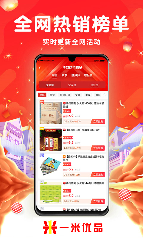 1、全平台优惠券整合:一米优品深度对接淘宝、京东、拼多多等800余家电商平台,提供内部隐藏优惠券,用户下单前搜索商品即可领取。例如,某品牌空调在电商平台标价3999元,通过一米优品领取专属券后,实际支付仅需3199元,直接节省800元。