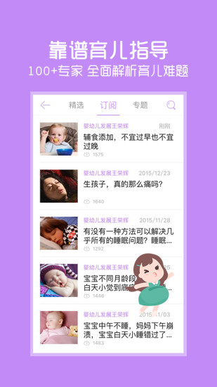 3、育儿知识库涵盖0-6岁各阶段喂养、护理、早教等专题,内容由儿科医生、育儿专家审核。用户可根据宝宝年龄或问题关键词快速检索,获取科学解决方案,避免网络信息的误导。