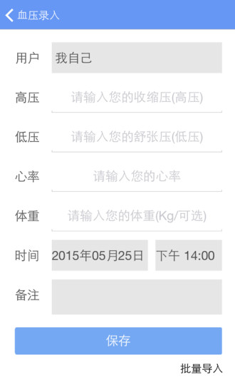 1、**多维度数据管理**:高血压管家支持手动录入与智能设备自动上传两种方式,可记录收缩压、舒张压、心率、体重等数据,并生成日/周/月趋势图。例如,用户使用配套血压计测量后,数据实时同步至APP,形成动态曲线,便于观察血压波动规律。此外,系统支持多人账户管理,家庭成员可共享数据,方便医生综合评估。