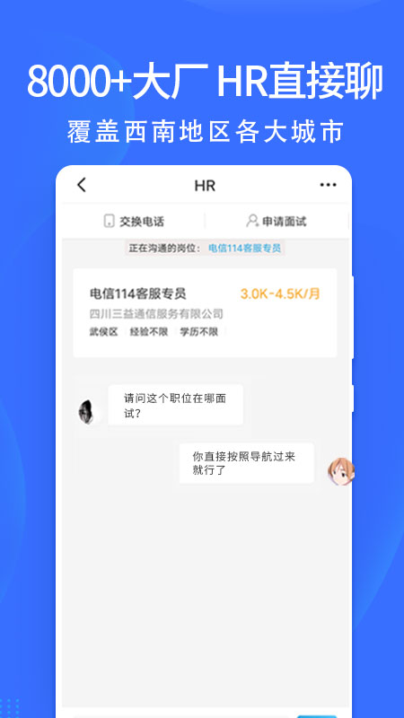 2、实时沟通:内置即时通讯功能,求职者可直接与企业HR或部门负责人对话,询问岗位细节、面试安排等,避免邮件或电话沟通的延迟。平台还支持“消息已读”提示,确保信息及时触达。