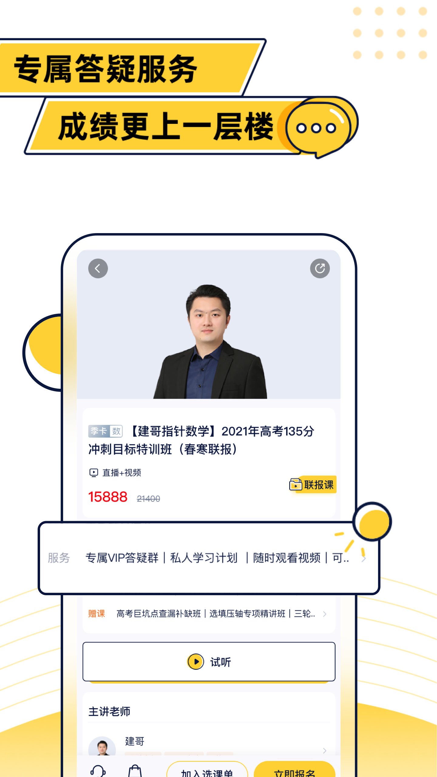 蹊径课堂是一款专注于K12教育领域的在线学习平台,覆盖小学至高中全学科课程,以“个性化学习路径”为核心,通过AI算法与名师资源结合,为用户提供定制化学习方案。平台涵盖数学、语文、英语、物理等核心科目,支持直播互动、录播回放、智能题库等功能,并集成英语跟读评分、作文智能批改等创新工具。其“三师体系”(主讲教师+班主任+助教)与VIP答疑服务,形成从知识传授到问题解决的完整闭环,尤其在中高考提分领域积累大量口碑,成为学生突破学习瓶颈的高效工具。