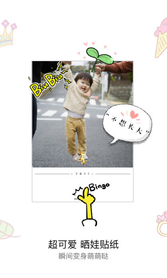 3、**社交化内容生态**:内置社区模块支持用户上传作品至“亲宝宝”平台,形成家庭专属相册。同时,宝拍与热门综艺《爸爸去哪儿》合作推出联名贴纸库,用户可为照片添加“萌娃表情包”“亲子任务卡”等元素,增强内容传播的趣味性。
