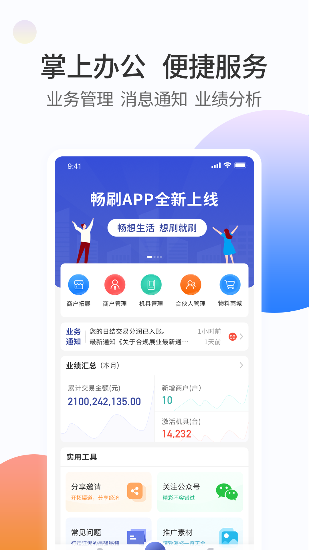 3、生态协同能力强,与杉德支付旗下"杉付通"APP数据互通,展业人员可同步管理个人收款码与商户设备。2025年新增的"合伙人裂变"功能,通过推荐码机制实现团队业绩自动关联,头部用户月均新增下级合伙人达47人。