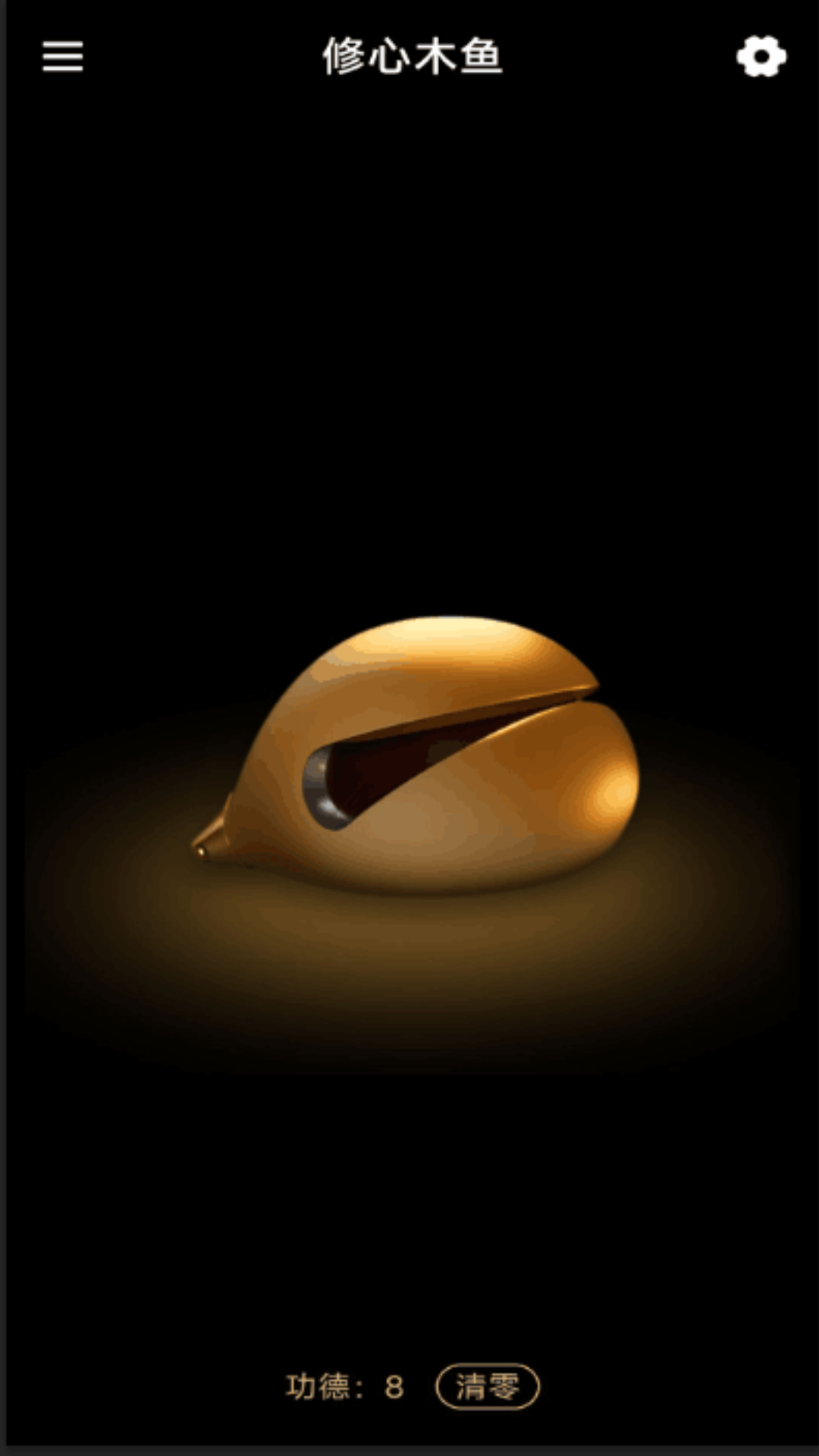 1、木鱼模拟:APP内置高保真木鱼音效,用户可通过点击屏幕或设置自动敲击模式,模拟真实木鱼的节奏与音色。敲击时,屏幕会泛起涟漪波纹,配合震动反馈,带来沉浸式的感官体验,帮助用户快速进入专注状态。