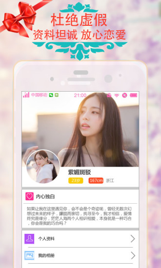 1、用户口碑:多数用户评价蜜爱“界面简洁、匹配精准”,尤其是游戏化任务设计让社交不再枯燥。部分用户提到,通过平台成功脱单,甚至步入婚姻殿堂,印证了其有效性。