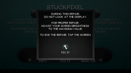 1、Stuck Pixel Tool的亮点之一在于其“零门槛”设计。无需专业知识,用户只需点击“开始修复”按钮即可启动流程,APP会通过动画演示引导操作,即使对电子设备不熟悉的用户也能快速上手。