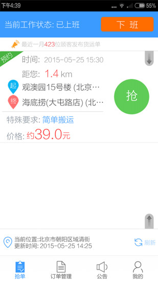 1、全城货源覆盖:e速运整合了同城零售、批发市场、搬家公司等多元货源,日均订单量超10万单。司机无论身处城市核心区还是郊区,均可通过APP接收到周边3-10公里内的订单,空驶率降低至15%以下,较传统货运模式效率提升2倍以上。