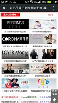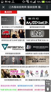江苏服装招商网APP是专为服装行业打造的数字化招商服务平台,集品牌推广、招商对接、行业资讯于一体。该平台以“精准招商、高效服务”为核心,覆盖服装产业链上下游,涵盖品牌商、制造商、代理商及零售商等多元角色。通过智能匹配技术,用户可快速获取目标区域的招商政策、场地资源及合作机会,同时享受一对一客服跟踪、招商页面定制、SEO优化等增值服务。平台数据实时更新,支持手机端与PC端无缝同步,助力企业降低招商成本,提升市场拓展效率。