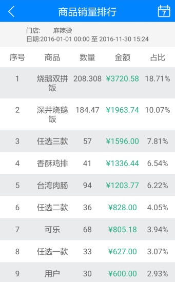 1、**全维度数据监控**:开店宝典提供实时销售看板,涵盖日/周/月收入统计、商品热销排行、客单价分析等功能。例如,商家可通过“商品分类统计”快速识别爆款产品,调整采购与陈列策略;系统自动生成可视化报表,支持按时间、品类、支付方式等多维度筛选,帮助用户精准定位经营痛点。