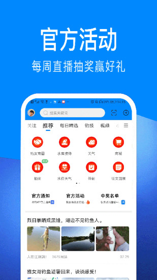 3、用户体验优:界面设计简洁直观,操作流程符合垂钓场景需求。例如,钓点推荐页采用地图可视化展示,用户可一键导航至目标位置;渔具商城支持语音搜索,方便用户在户外环境下快速查找商品。