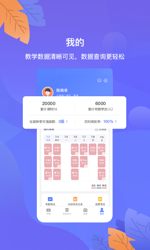 1、桃李未来企业端的核心功能之一是员工全生命周期管理。从入职审批、考勤记录到绩效考核,系统支持一站式流程操作,并自动生成可视化报表,帮助HR部门快速完成数据汇总与分析。例如,员工可通过APP提交请假申请,管理者实时审批,系统自动同步至考勤模块,避免信息滞后。