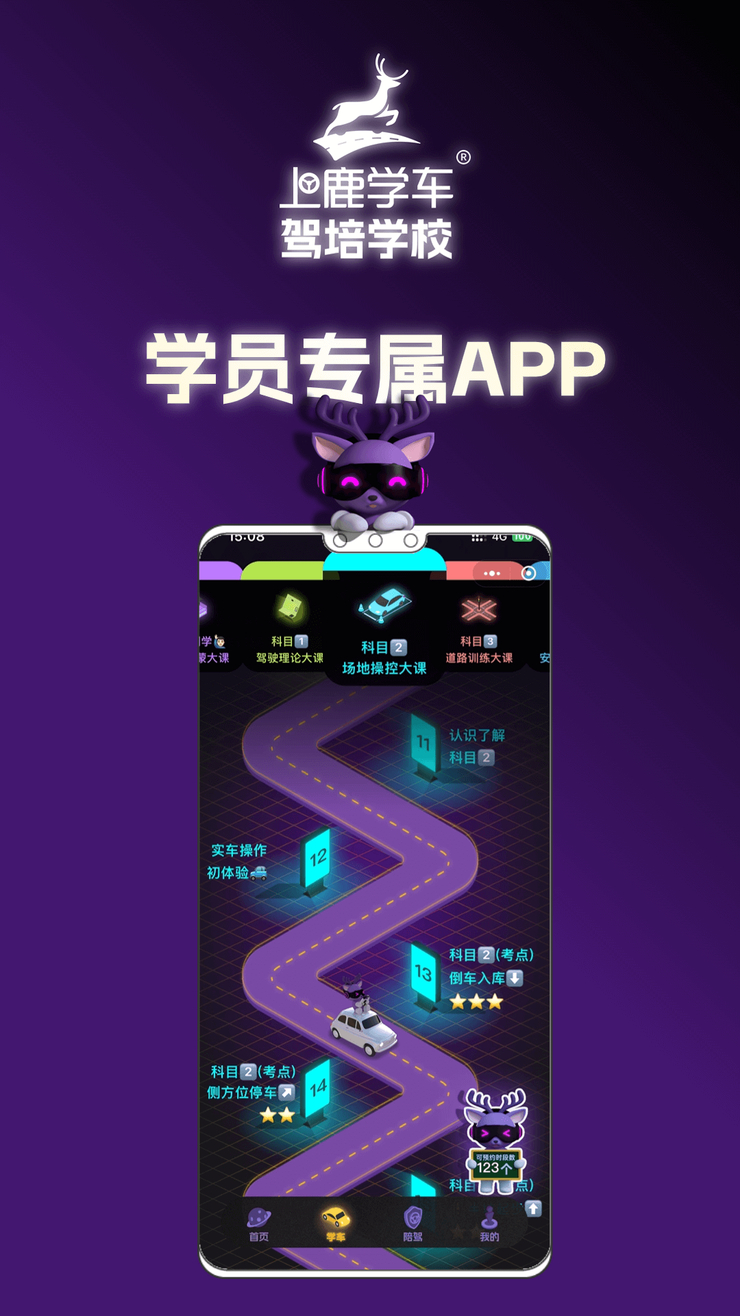 上鹿学车是一款由遵义上鹿互联网科技有限公司研发的互联网驾培服务平台,专注于为学员提供全流程学车解决方案。该应用通过整合VR虚拟现实、短视频教学、智能题库等创新技术,将传统驾培服务与数字化工具深度融合,覆盖从报名咨询、理论学习到实操训练、考试预约的全周期。平台支持iOS、Android双系统,并与全国数百家优质驾校建立合作,用户可通过手机端完成驾校筛选、教练预约、费用缴纳等操作。其核心目标是通过技术手段降低学车门槛,提升学习效率,帮助用户快速掌握驾驶技能并顺利通过考试。