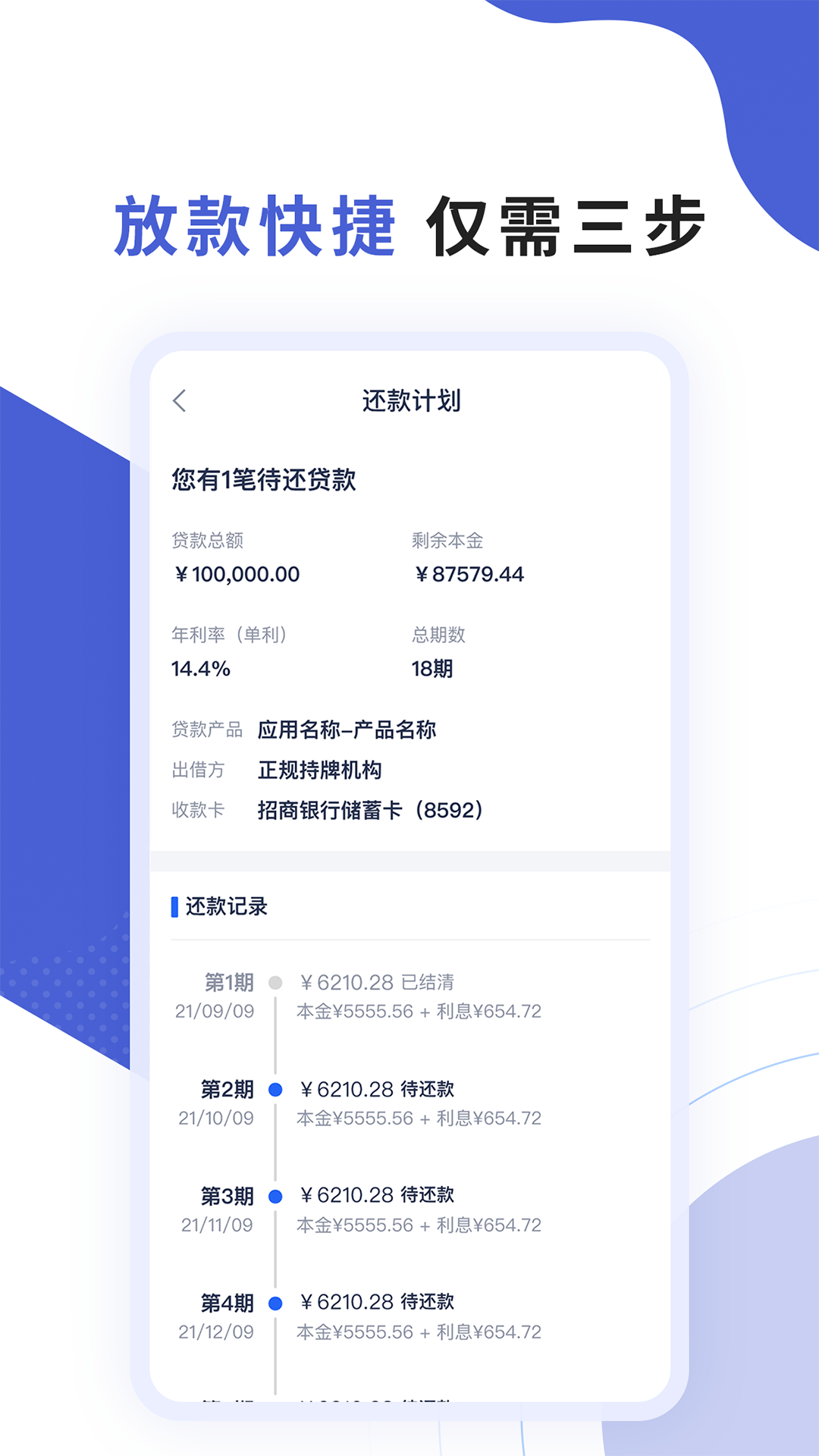 2、**分期方案灵活定制**:用户可根据还款能力选择3-36期不等的分期计划,系统自动计算每期还款金额与总利息。例如,借款5万元分12期还款,月供约4500元,总利息低于部分信用卡分期费率,适合中长期资金规划。