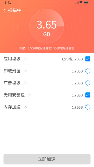 2、内存加速:通过一键释放后台运行程序,快速优化内存占用,解决手机卡顿、延迟等问题。尤其针对游戏或多任务场景,能有效提升设备响应速度,让操作更流畅。