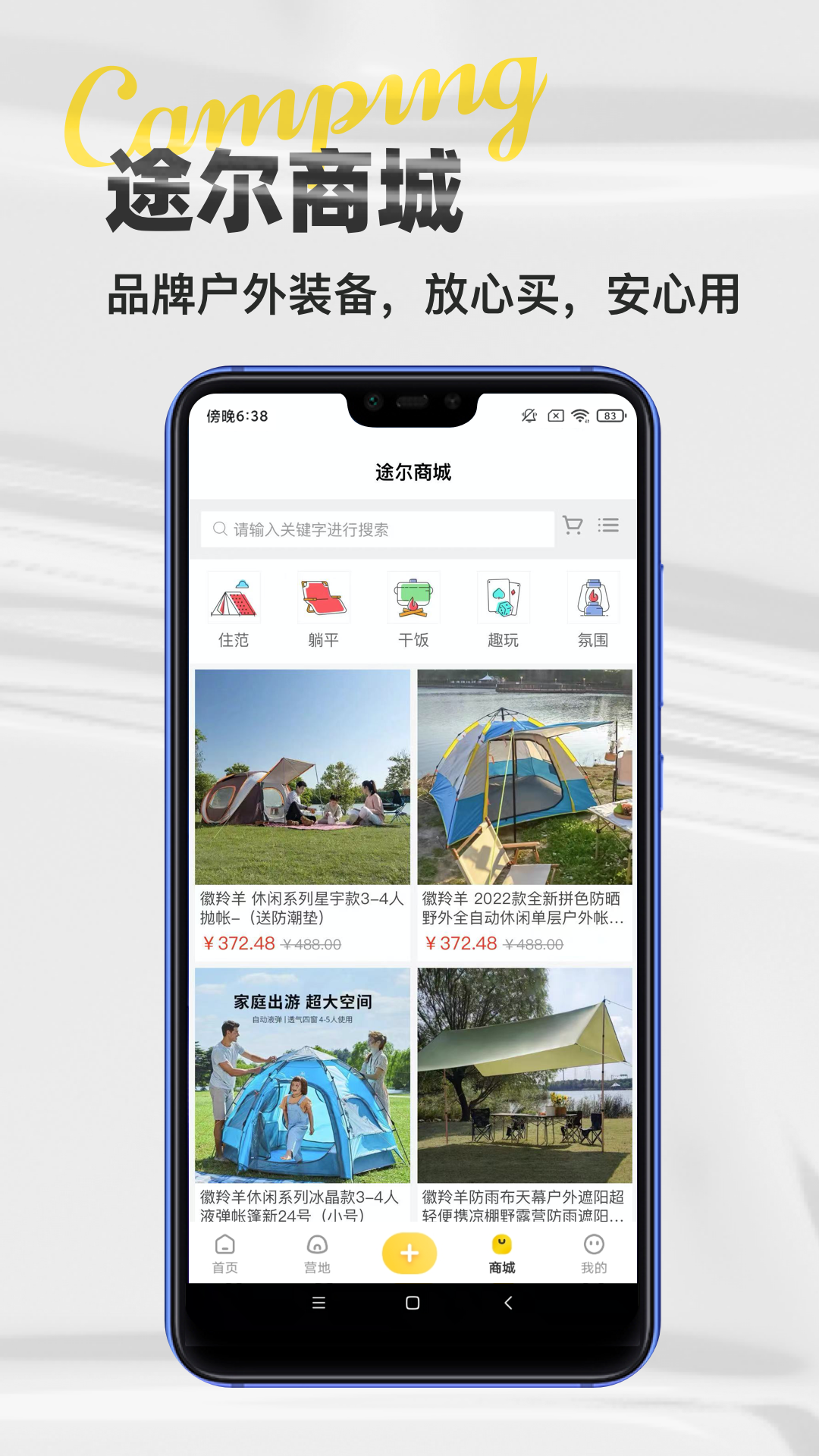 3、**装备共享与商城**:途尔商城提供露营装备租赁与购买服务,涵盖帐篷、炊具、航拍设备等品类,支持48小时发货与七天无理由退货。用户还可发布闲置装备,通过“精品租赁”模式实现共享,降低露营门槛。例如,新手用户可租赁全套入门装备,资深玩家则能出租专业设备赚取收益。
