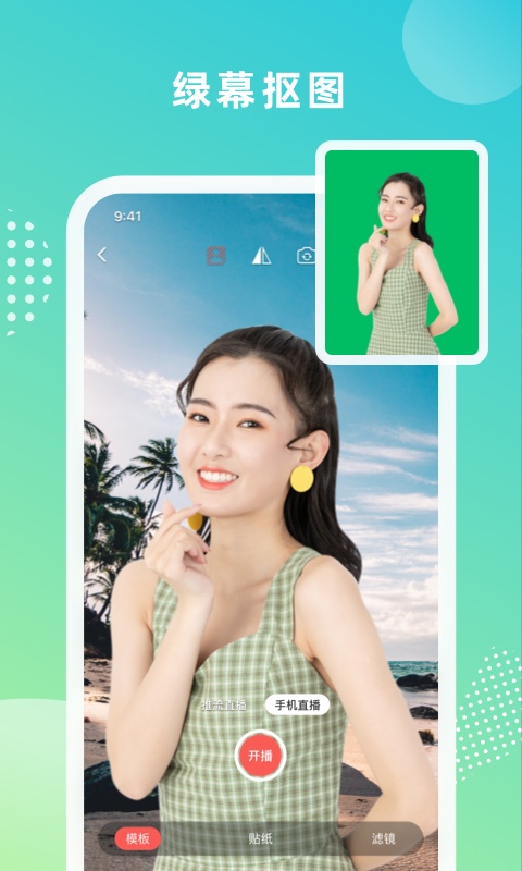 绿幕大师是一款基于AI智能算法的移动端图片与视频编辑工具,专注于发丝级精准抠图与虚拟背景合成。该应用通过深度学习技术实现无绿幕环境下的实时人像分离,支持一键替换背景、动态滤镜叠加及多平台推流功能。用户可自由调用内置的风景、节日、电商等海量场景模板,快速生成专业级视觉内容。无论是手机相册中的日常照片,还是直播场景中的动态画面,均能通过“AI发丝优化”技术实现人物边缘的毫米级处理,确保合成效果自然无痕。其核心定位为“零门槛创作工具”,兼顾个人用户修图需求与商业用户带货场景,现已成为抖音、快手等平台创作者常用的内容生产利器。