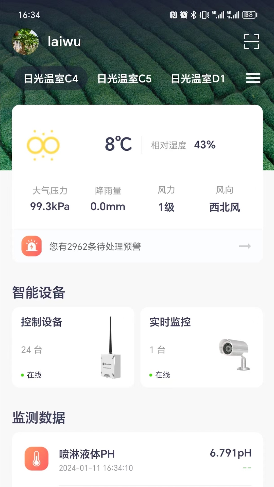 科百智汇APP是由北京科百宏业科技有限公司研发的农业物联网综合管理平台,以环境传感、设备控制、视频监控为核心,集成环境数据实时监测、设备远程管理、异常预警响应等功能。用户可通过手机或PC端随时随地查看农田土壤温湿度、光照强度、气象参数等数据,并远程控制灌溉阀门、通风设备等农业设施。平台支持高清视频监控,可实时观察作物生长状态,结合智能分析模型提供病虫害识别、水肥优化建议,帮助农户实现精准种植与智能化管理,降低劳动强度,提升农业生产效率。