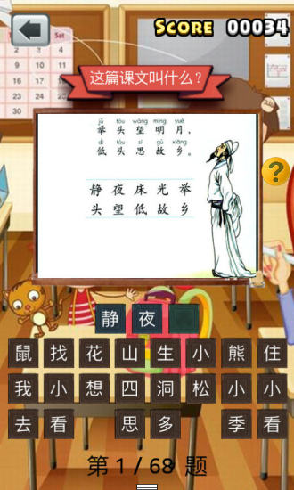 1、游戏化学习机制贯穿全程,例如“拼音钓鱼”游戏中,孩子需用声母鱼竿钓起对应韵母的鱼,组合成正确拼音才能得分。这种设计将抽象知识转化为具象操作,符合6-7岁儿童“具象思维”为主的心理特点。