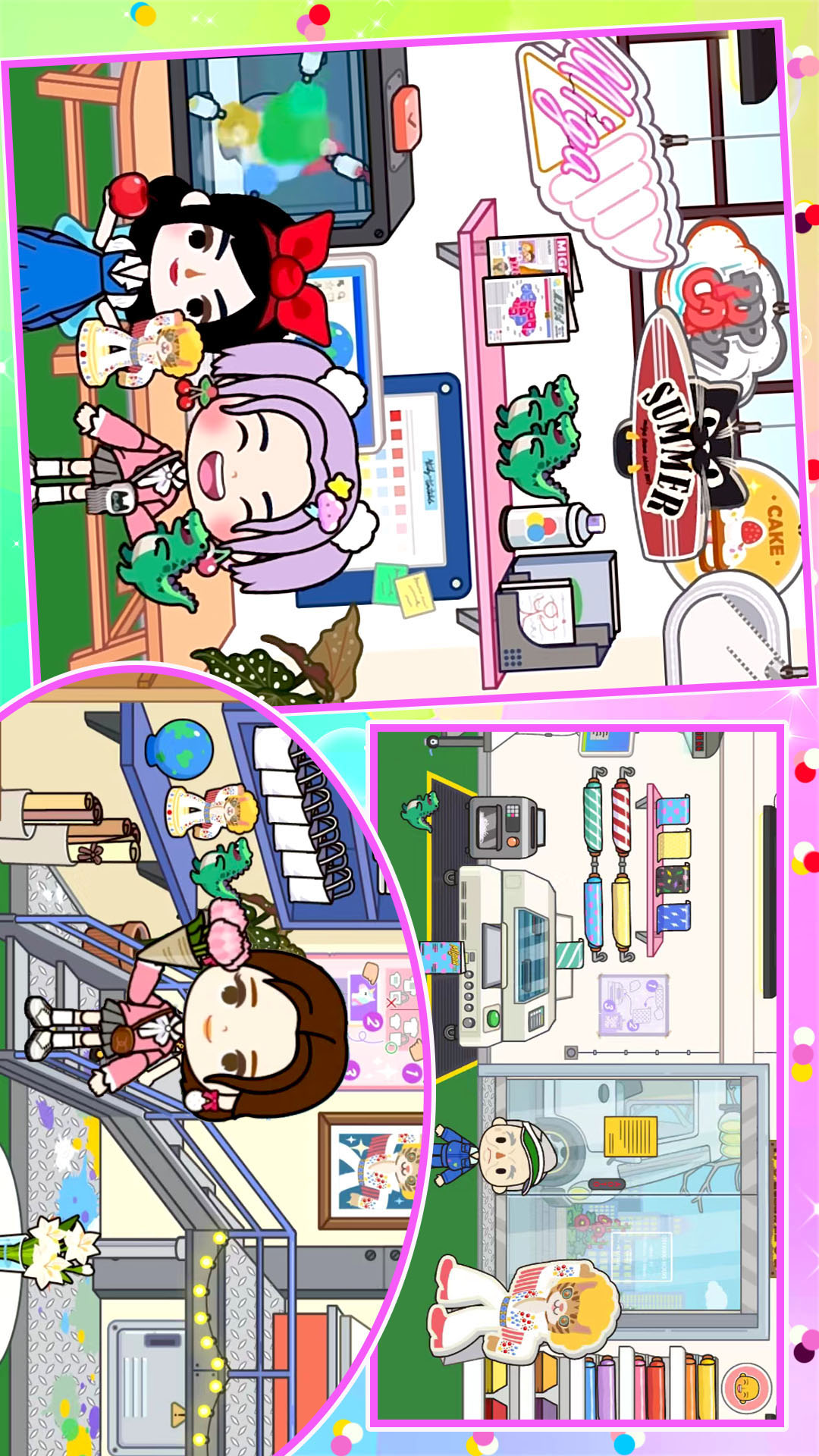 1、**低门槛高沉浸体验**:游戏采用点击放置操作,界面简洁直观,5岁儿童可在10分钟内掌握基础玩法。同时,3D卡通画风与动态光影效果营造出强烈的代入感,例如滑板公园的阳光反射、舞蹈工作室的灯光变化,均通过细节处理提升视觉享受。