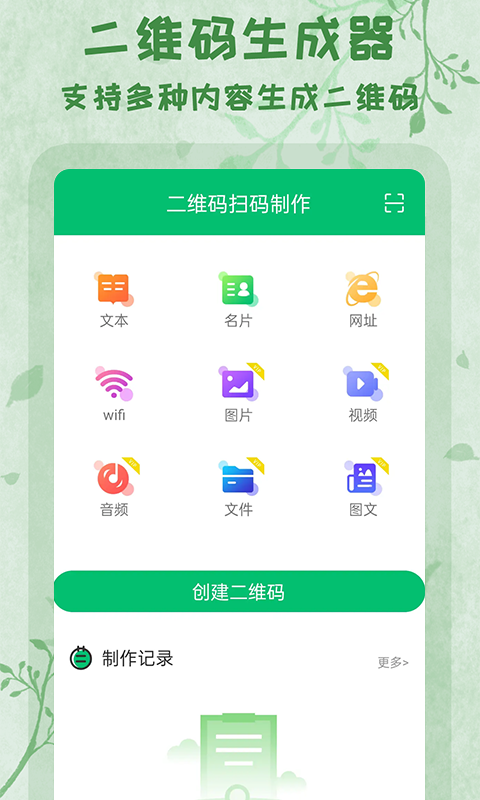 “二维码扫码制作”APP是一款集二维码生成、扫描、美化与管理于一体的多功能工具。它不仅支持用户快速生成各类文本、网址、联系方式、Wi-Fi密码等内容的二维码,还能通过手机摄像头精准扫描解析他人二维码,获取隐藏信息。APP界面简洁,操作流畅,无论是个人用户制作专属二维码,还是商家用于活动推广、商品溯源,都能轻松实现。更值得一提的是,它提供了丰富的模板库和个性化定制选项,让每个二维码都独具特色,满足不同场景下的多样化需求。