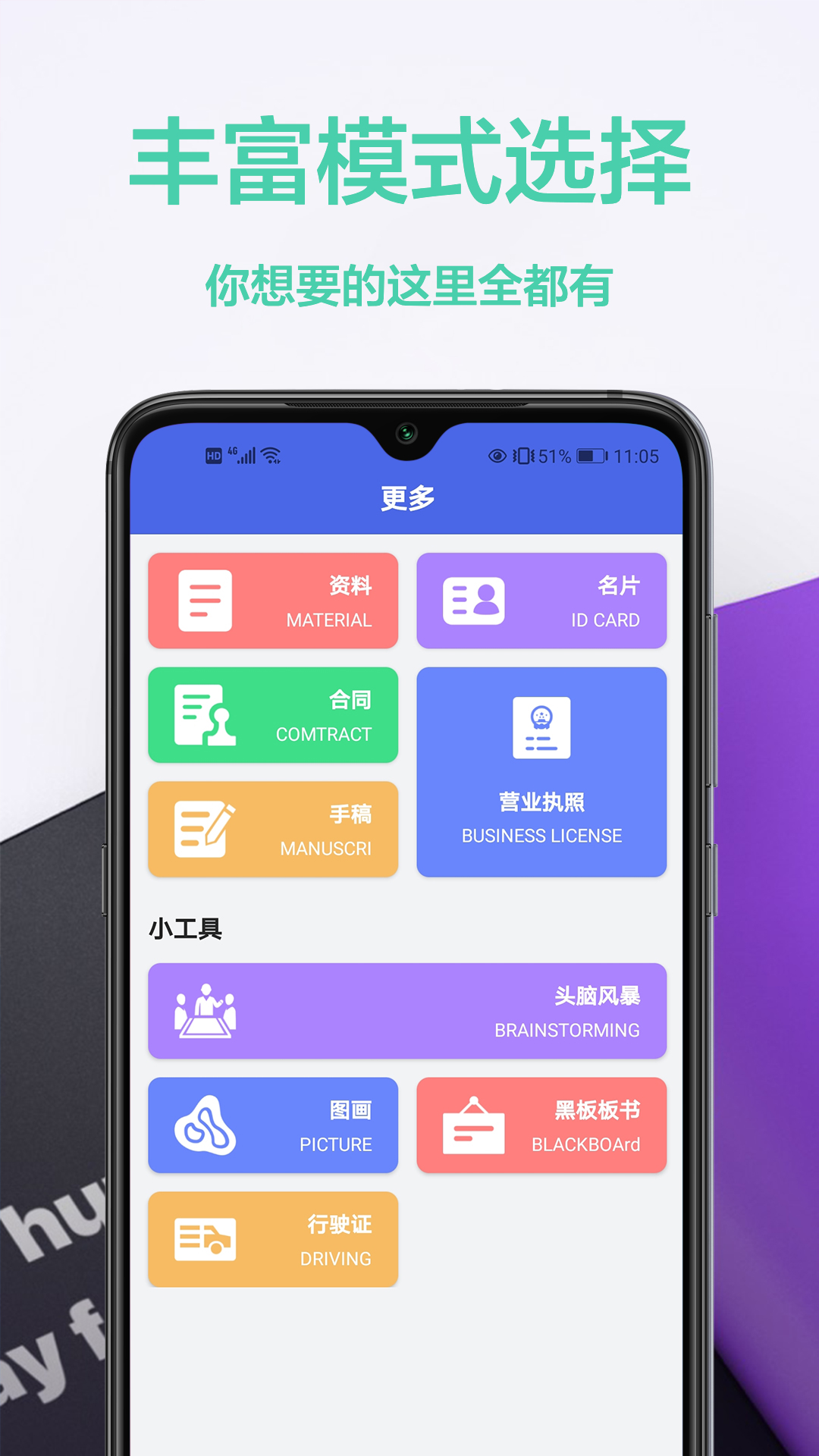 1、与同类APP相比,智能扫描王的操作流程更简洁。以扫描身份证为例,传统APP需手动调整边框、选择正反面、保存为图片三步操作,而智能扫描王可一键完成“拍摄-自动裁剪-正反面识别-添加水印-保存至卡包”全流程,耗时从2分钟缩短至10秒。这种“傻瓜式”设计降低了用户的学习成本,尤其适合技术不熟练的群体。