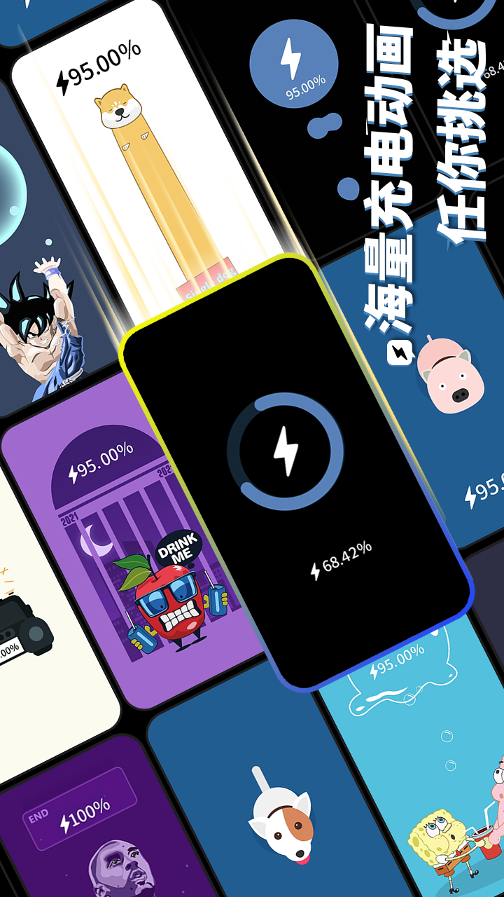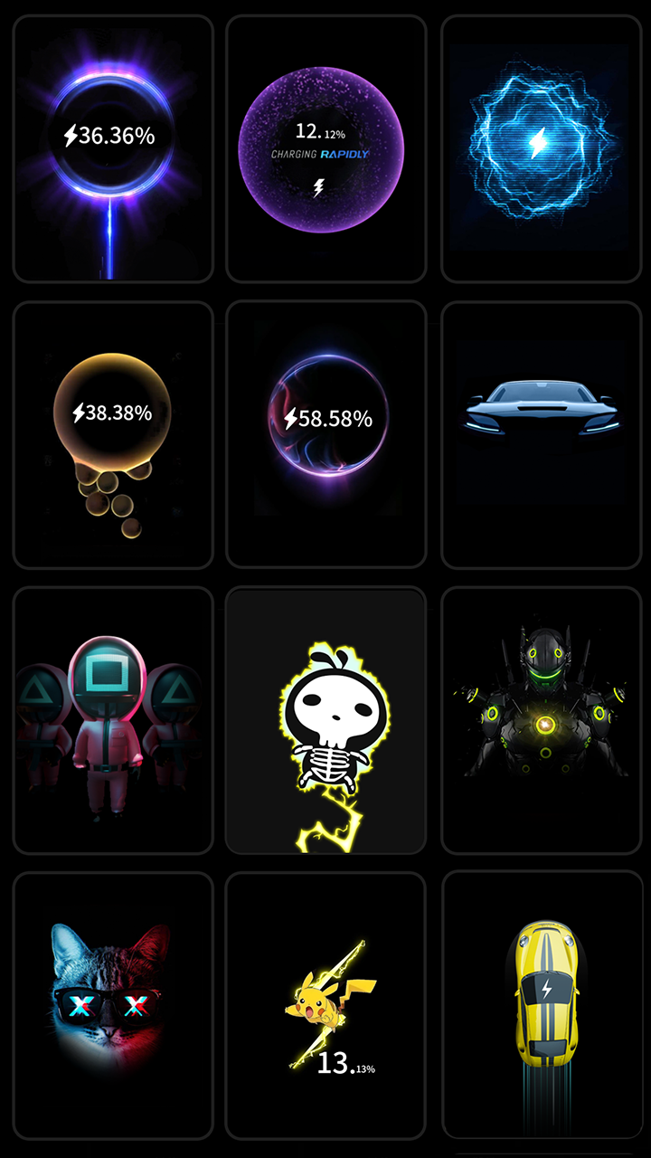1、**动态充电动画**:应用内置数十种动画模板,涵盖卡通、科幻、自然等风格。例如,用户可选择“哥斯拉吸能”动画,充电时屏幕显示怪兽吞噬能量;或选择“皮卡丘卖萌”,让充电过程充满萌趣。动画支持自动播放,连接充电线即触发,无需手动操作。