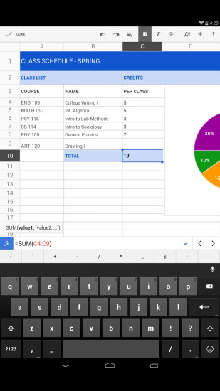 1、该应用的核心功能围绕表格创建与编辑展开,用户可自由调整行列、设置数据格式(如货币、百分比、日期等),并支持导入Excel文件进行二次编辑。其公式库涵盖基础运算、逻辑判断、文本处理等百余种函数,满足从简单求和到复杂数据分析的多样化需求。