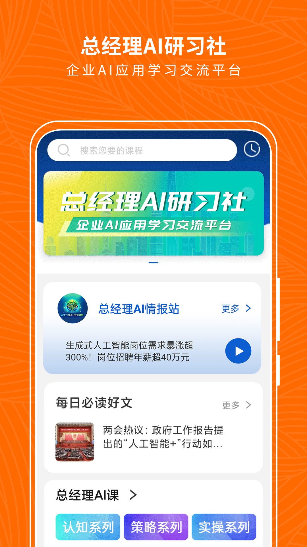 “总经理AI研习社”是一款专为企业管理者及职场精英打造的AI学习与交流平台。该APP整合了前沿的人工智能技术与管理学知识,通过智能课程推荐、实战案例解析、行业大咖直播等功能,帮助用户快速掌握AI时代的管理思维与工具应用。平台覆盖战略决策、团队管理、数字化转型等核心场景,提供从入门到进阶的全周期学习资源,同时支持用户参与社群讨论、提交作业、获取AI导师反馈,形成“学-练-用”闭环。无论是传统企业高管寻求技术赋能,还是创业者探索AI商业落地,都能在这里找到定制化成长路径。